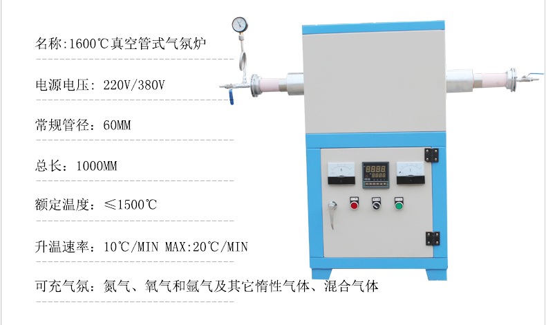 本系列真空管式氣氛爐為周期作業時,額定溫度為1600℃,供實驗室、科研單位、工礦企業做在低真空狀態下或氣氛保護下熱處理加熱之用。